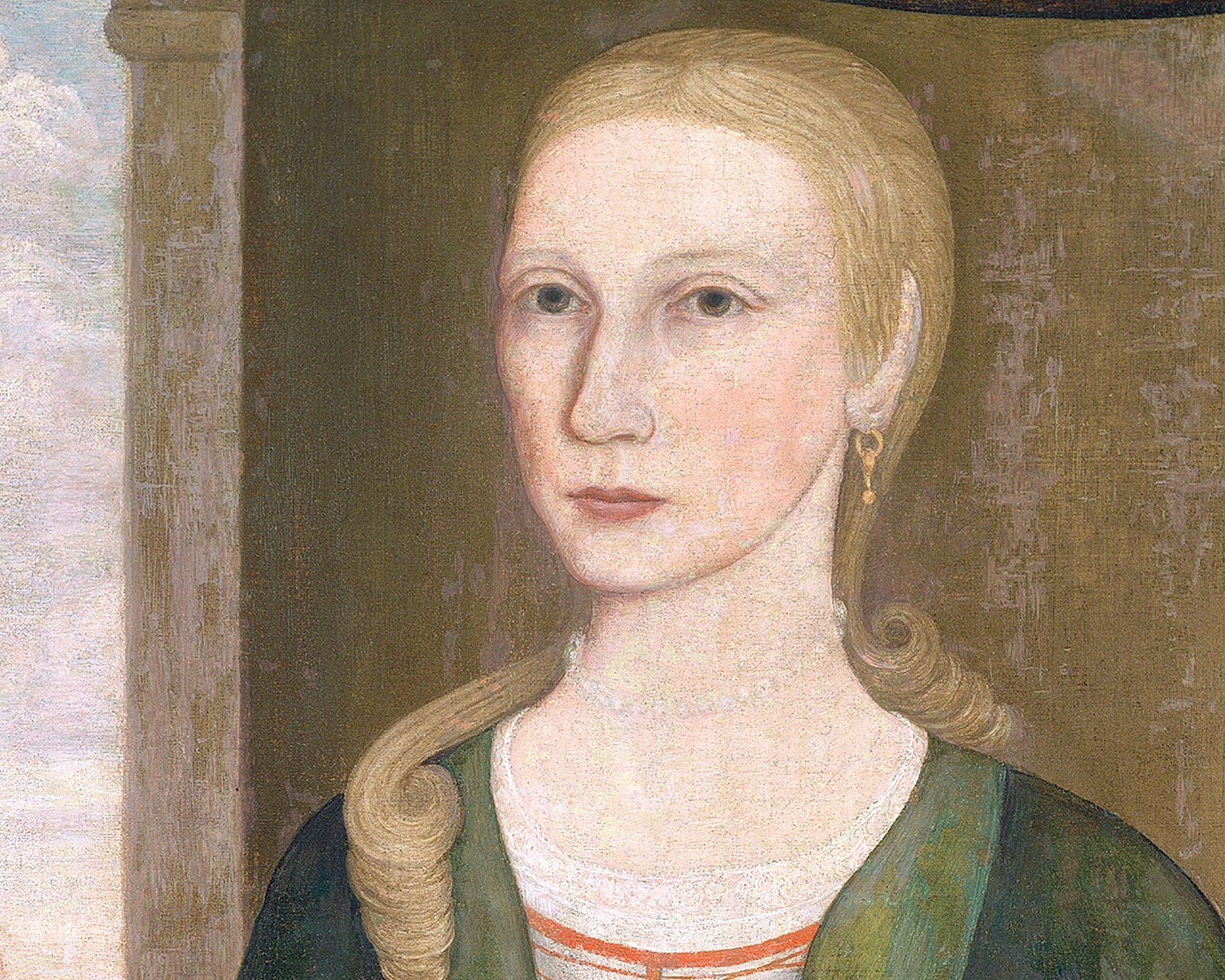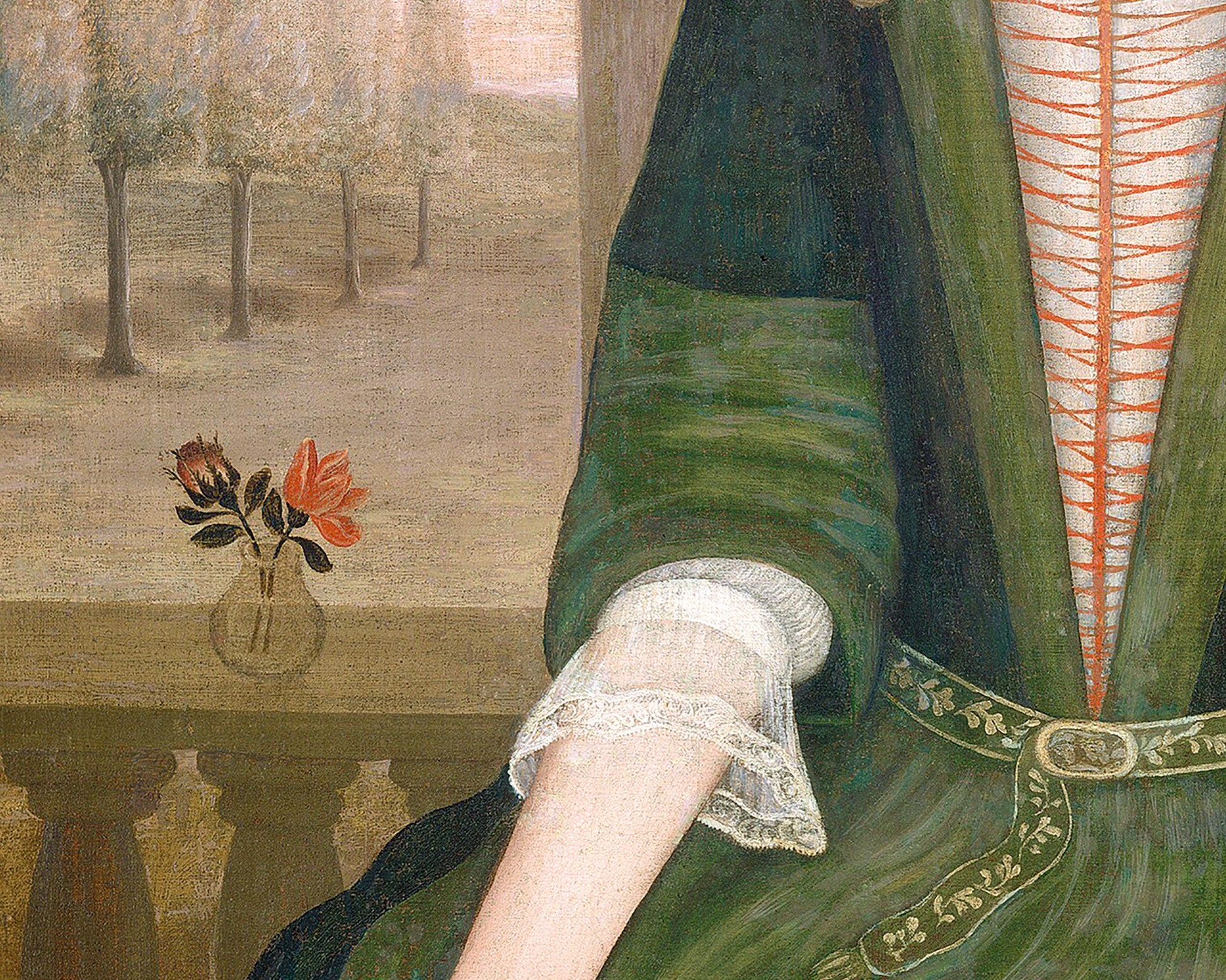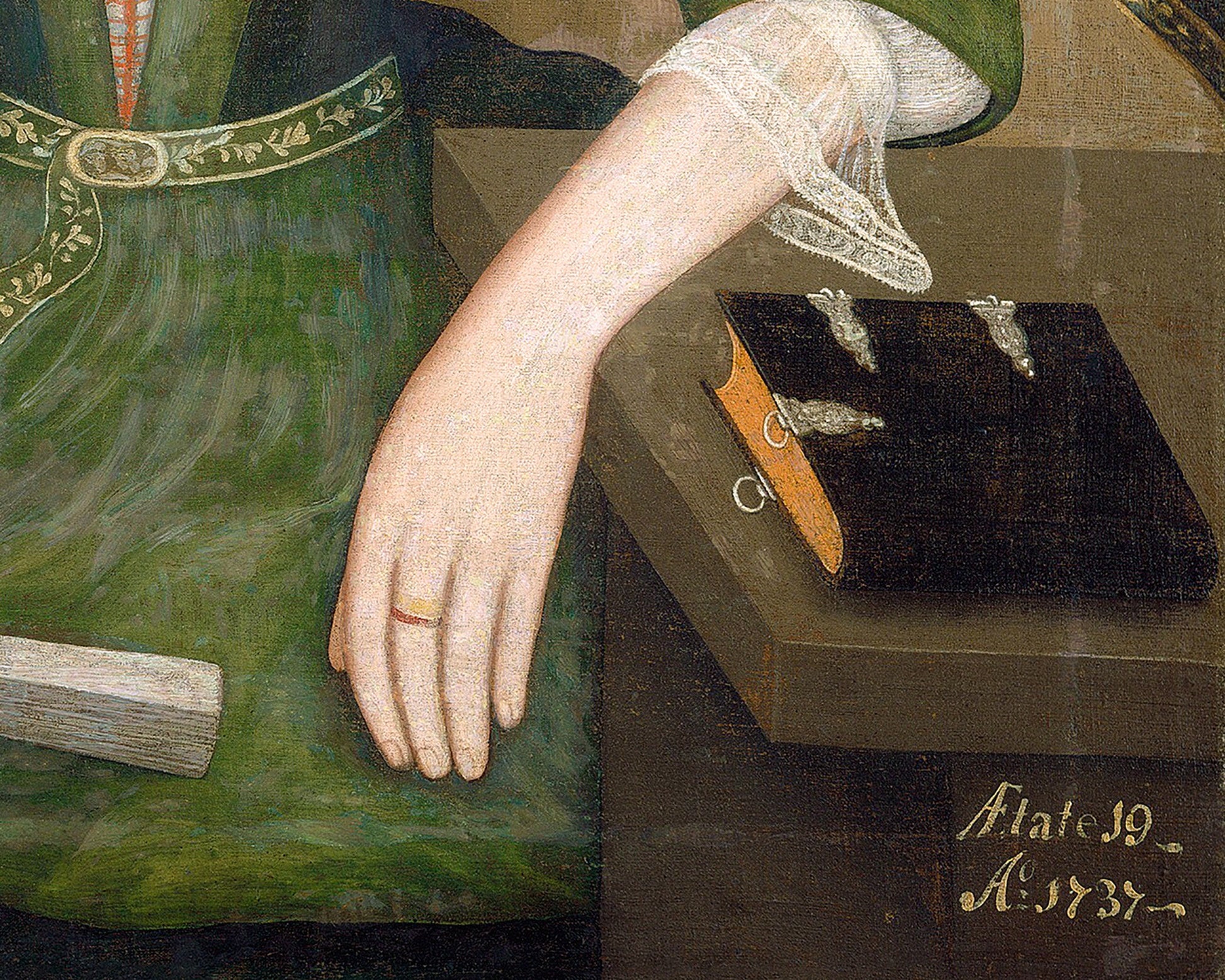 American folk art portrait | Young Lady with a Fan | Vintage woman in green dress | Americana wall art | 18th century fashion plate