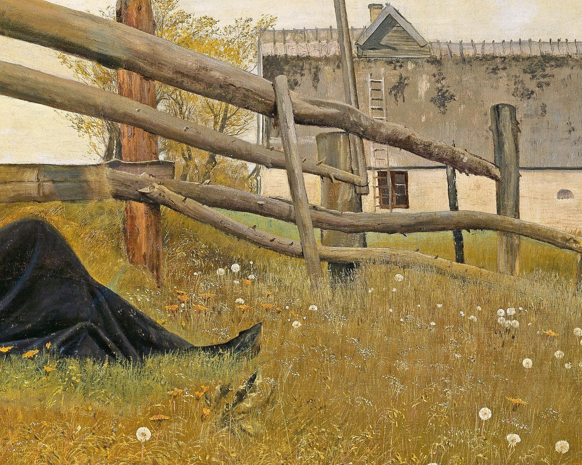 Dreaming girl | In the Month of June | Whimsical girl with dandelion | Farm art | Modern Danish art | Scandinavian Hygge