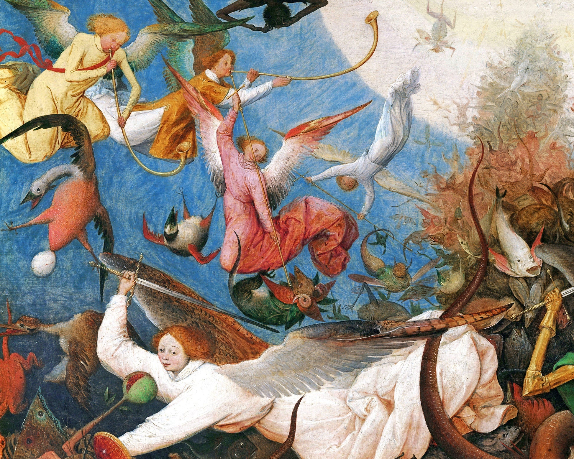 Epic 16th cent mural | Fall of the Rebel Angels | Bruegel, the Elder | Vintage religious art | Macabre, Fantasy wall art | Demons & Angels