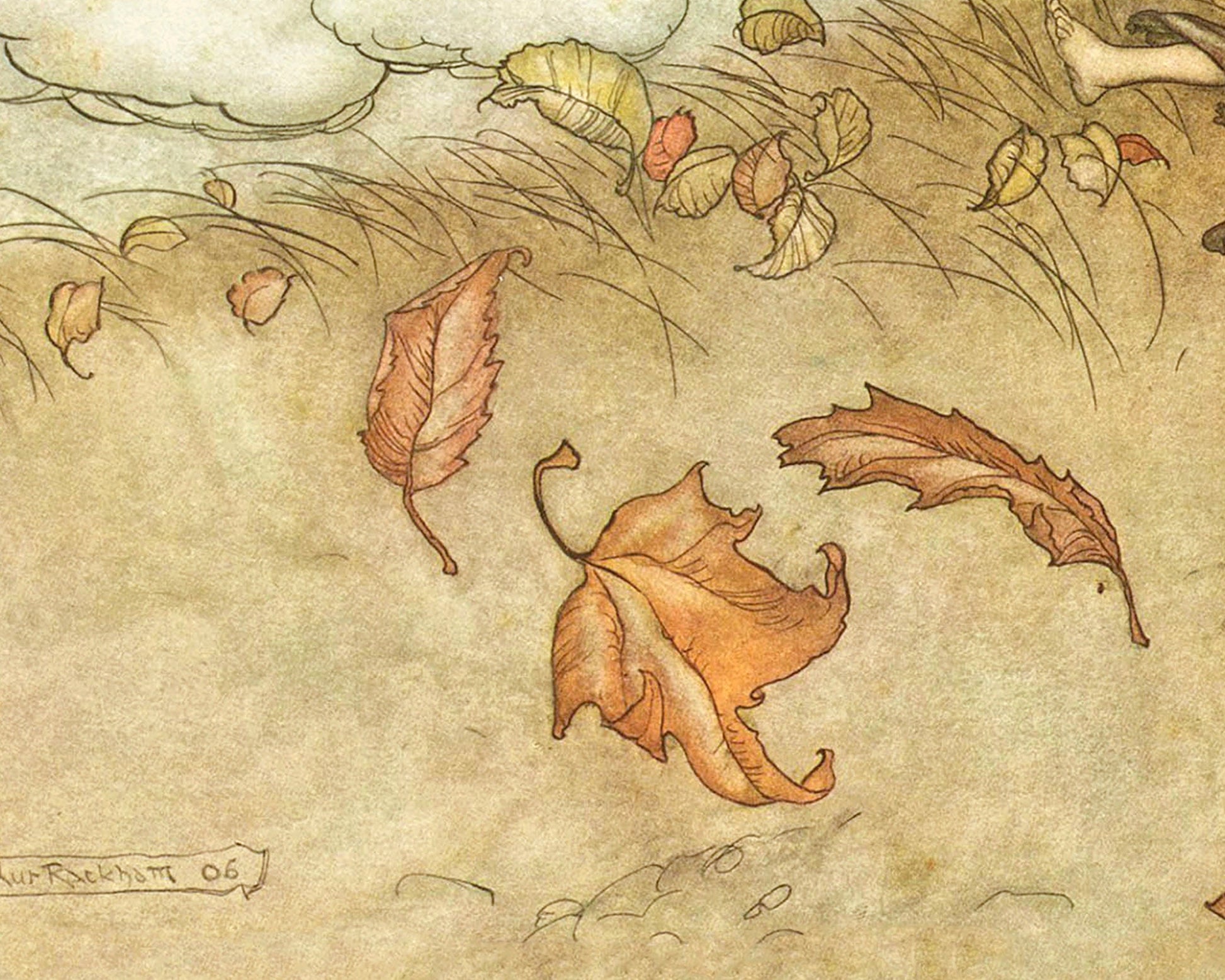 Fall fairies art print | Arthur Rackham illustration | Vintage woodland wall art | Fairytale painting | Peter Pan | Autumn wall art