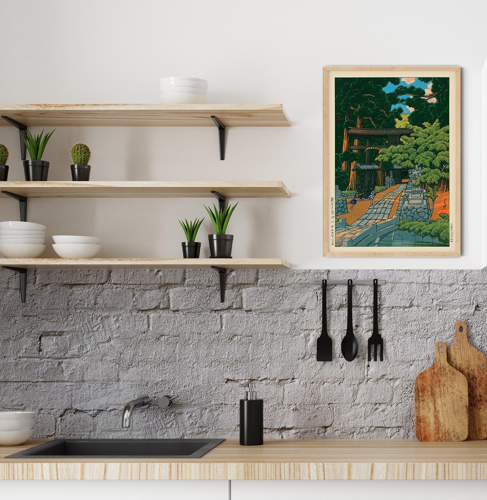 Kumagai Dairaidou Shrine by Hasui All posters and art prints are printed in-house on archival heavyweight matte paper, on wide format Canon professional series fine art pigment-based printers.Oversized and custom sized order requests are always welcome, however additional processing and shippings times are typically required. --- wholesale_readyAsian Art, Hasui, Hasui Kawase, Home decor, Japanese Art, Japanese Poster, Japanese Print, Japanese Woodblock, kitchen, kitchen decor, Kitchen_Decor, landscape, new, shin-hanga, Ukiyo-e, Ukiyoe Modern, Vintage Poster, Wall Art, woodblock, Woodcut Printjpn10235