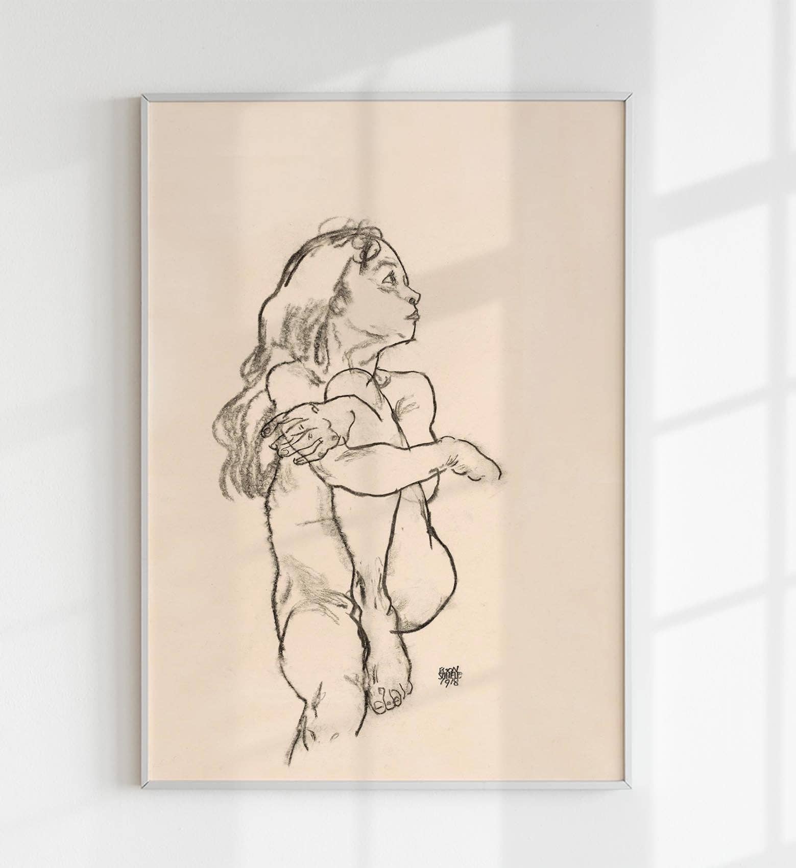 Seated Nude Girl Clasping Her Left Knee by Egon Schiele