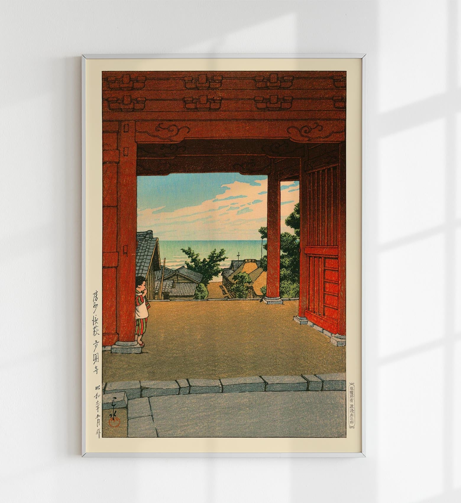 Tamon Temple at Hamahagi by Hasui All posters and art prints are printed in-house on archival heavyweight matte paper, on wide format Canon professional series fine art pigment-based printers.Oversized and custom sized order requests are always welcome, however additional processing and shippings times are typically required. --- wholesale_readyAsian Art, Hasui, Hasui Kawase, Home decor, Japanese Art, Japanese Poster, Japanese Print, Japanese Woodblock, kitchen, kitchen decor, Kitchen_Decor, landscape, new, red, shin-hanga, temple, Ukiyo-e, Ukiyoe Modern, Vintage Poster, Wall Art, woodblock, Woodcut Printjpn10294
