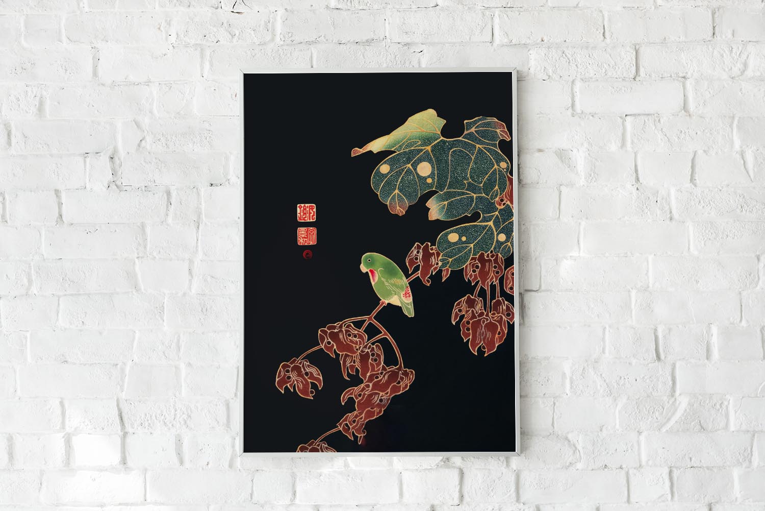 The Paroquet by Ito Jakuchu All posters and art prints are printed in-house on archival heavyweight matte paper, on wide format Canon professional series fine art pigment-based printers.Oversized and custom sized order requests are always welcome, however additional processing and shippings times are typically required. --- wholesale_readyAsian Art, bird, black, Green, Home decor, Japanese Art, Japanese Poster, Japanese Print, Japanese Woodblock, living room decor, New, parrot, red, Vintage Poster, Wall Art, woodblock, Woodcut Printjpn10303