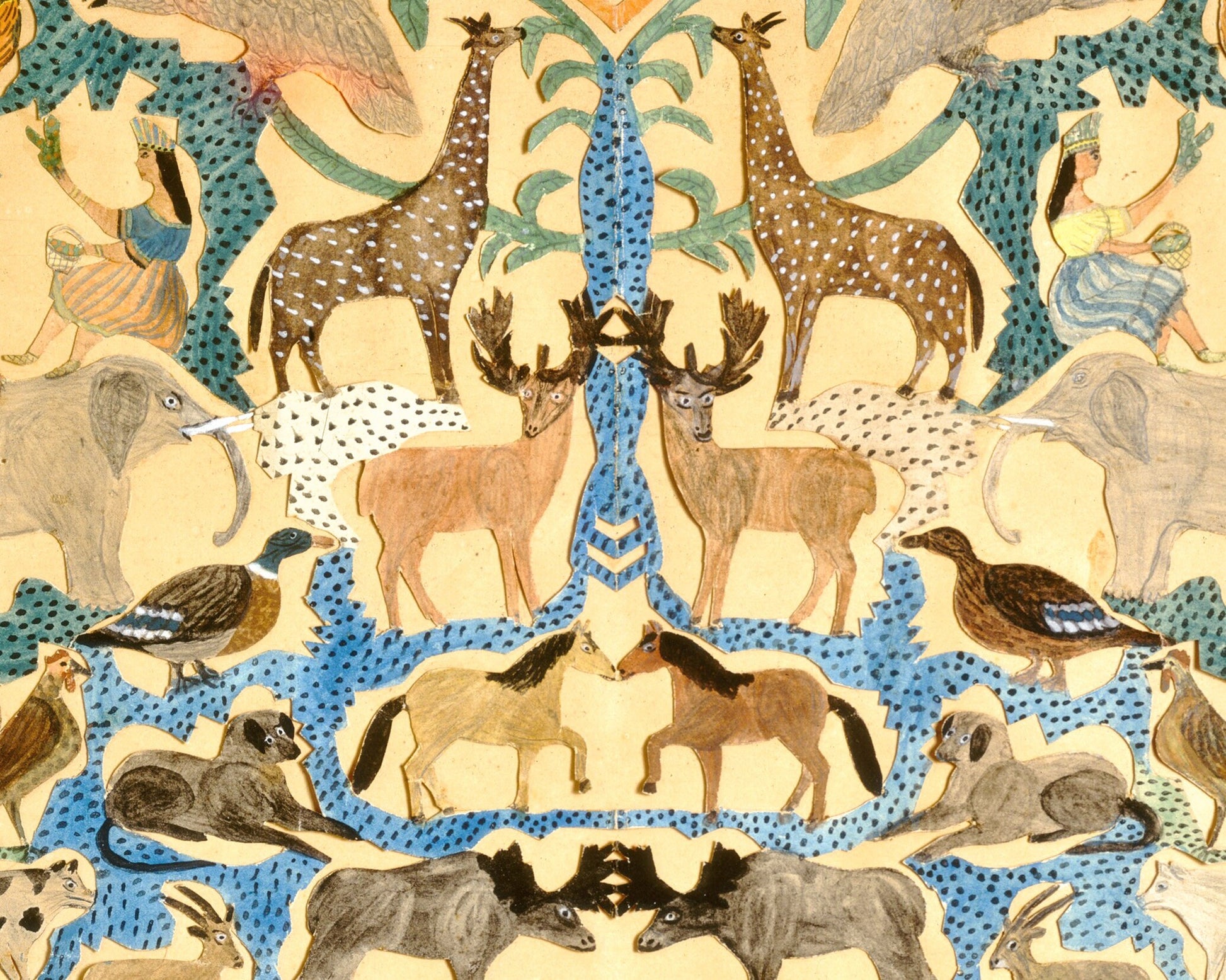 Vintage collage animal art | Americana folk art | Unusual animal art | Paper cut collage art | Naive, primitive art | 19th century animals